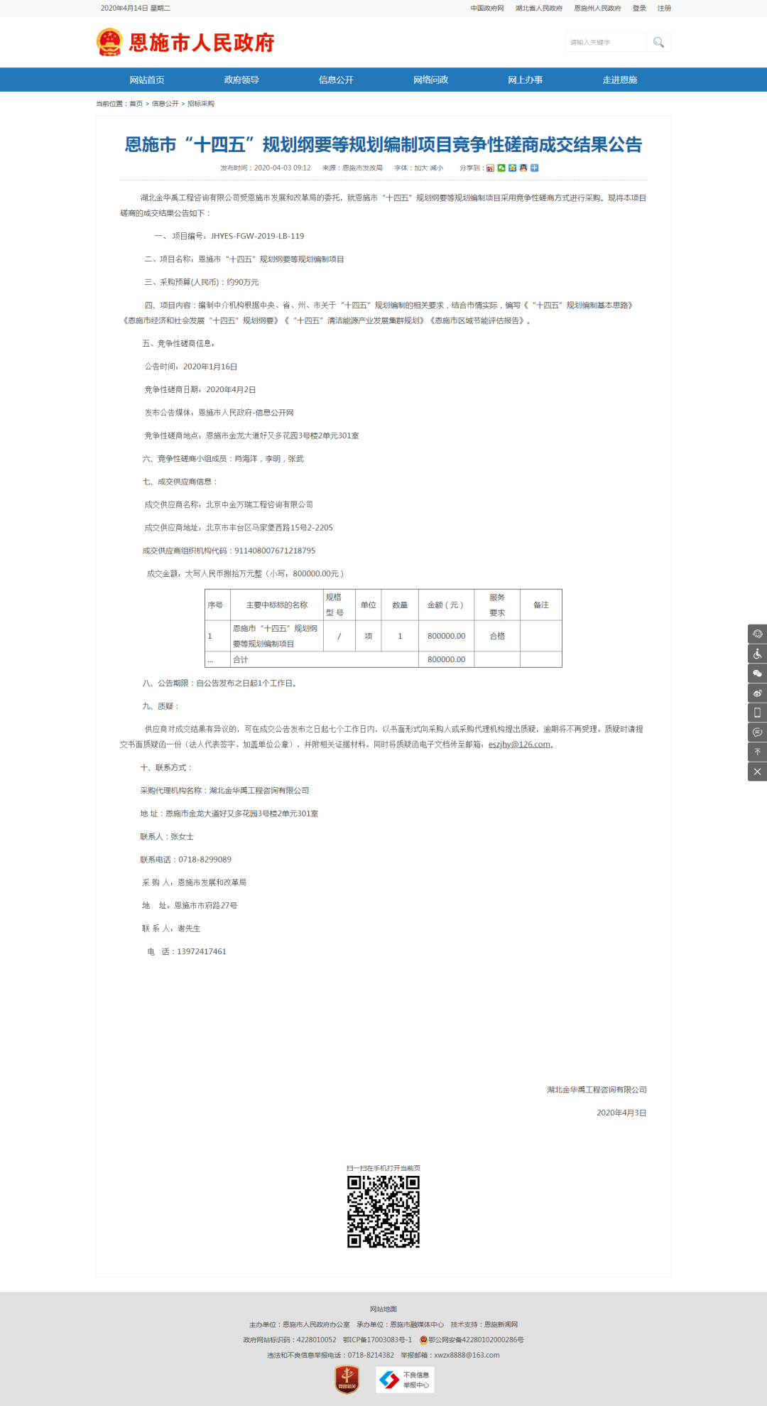 2020年4月3日恩施市人民政府网发布恩施市“十四五”规划纲要等规划编制项目竞争性磋商成交结果公告,安博电子官方网站成功中标,中标金额80万元。 安博电子官方网站(简称中金万瑞)是全国57家工程咨询甲级综合资信企业之一,拥有专业资信甲级8项、PPP专项资信甲级和综合资信甲级(所有专业规划咨询和评估咨询)。公司是国际咨询工程师联合会(FIDIC)、中国工程咨询协会的会员单位。 在规划业务领域,公司建立有规划研究与编制基地,依托公司六大平台,整合全国高端智库提升规划实力,为各级政府及企业提供区域经济和社会发展规划、产业发展规划、行业发展规划、招商引资规划、园区发展规划、项目发展规划等各种专项规划和综合规划研究编制咨询服务。