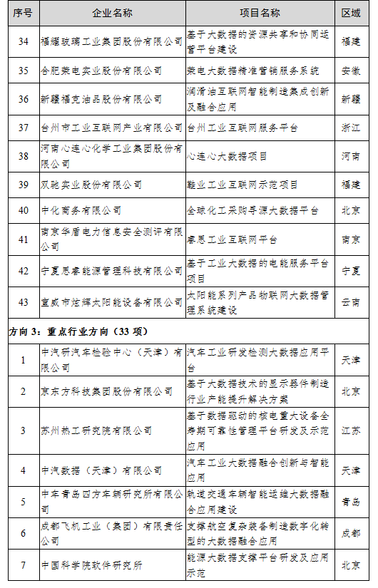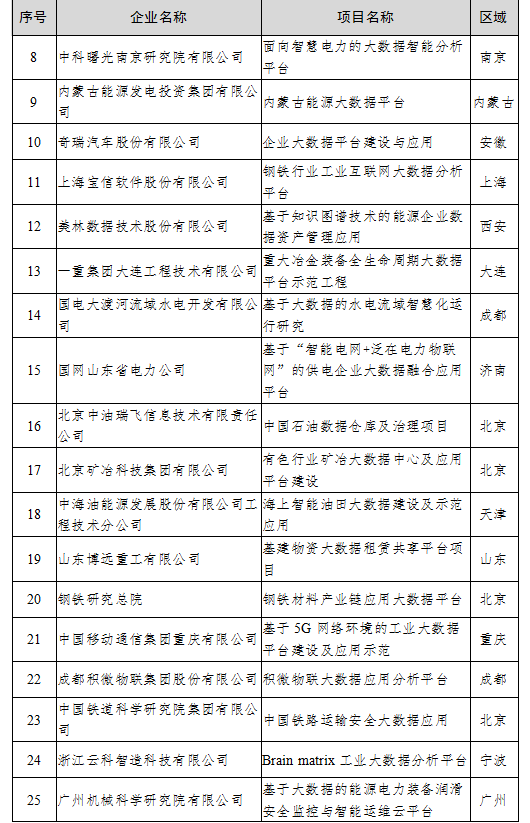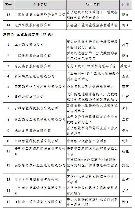 为贯彻落实《国务院关于印发促进大数据发展行动纲要的通知》(国发〔2015〕50号)和《大数据产业发展规划(2016-2020年)》(工信部规〔2016〕412号),按照《工业和信息化部办公厅关于组织开展2020年大数据产业发展试点示范项目申报工作的通知》(工信厅信软函〔2019〕243号)要求,经各单位推荐、专家组评审、网上公示,确定“中色非洲矿业有限公司基于大数据的金属矿山智能管控新模式”等200个项目为2020年大数据产业发展试点示范项目,现予以公布。