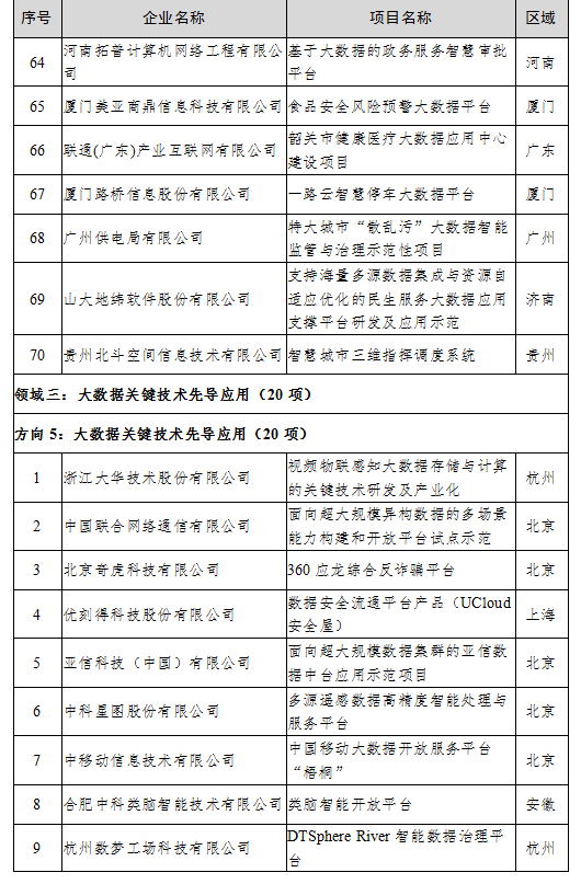 工业和信息化部办公厅关于公布2020年大数据产业发展试点示范项目名单的通知