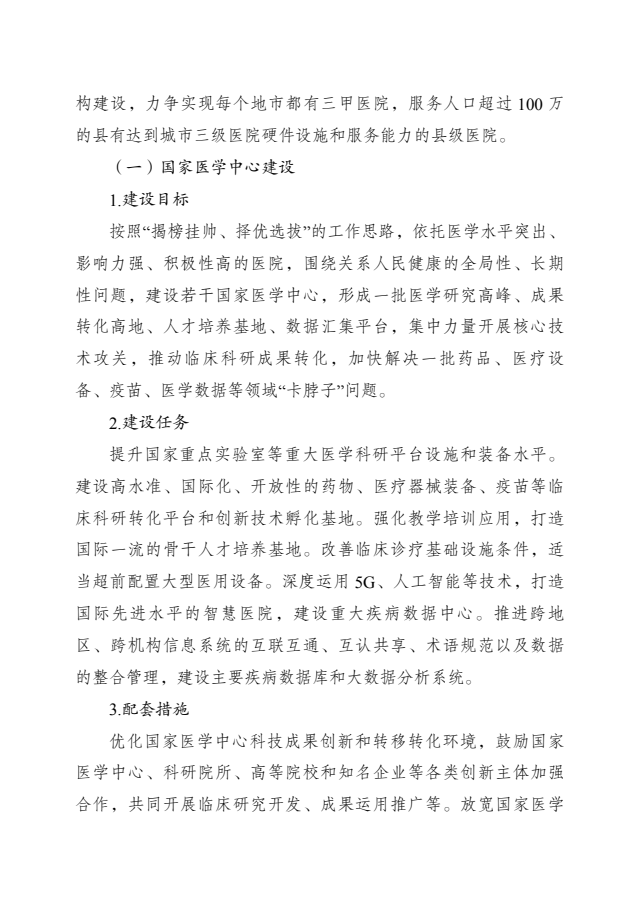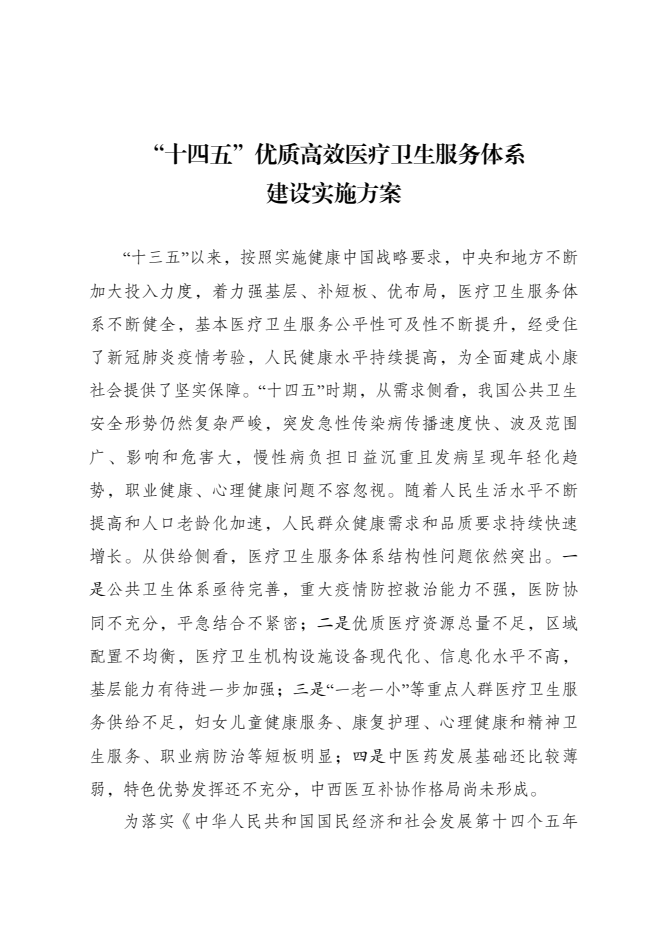 关于印发《“十四五”优质高效医疗卫生