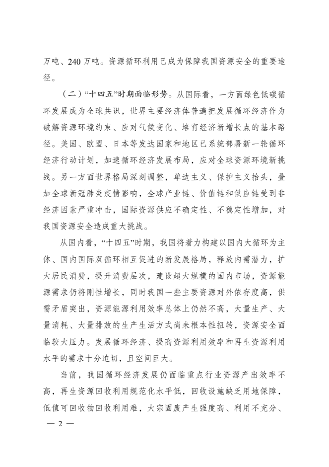 《“十四五”循环经济发展规划》已经国务院同意,现印发给你们,请结合实际抓好贯彻落实。