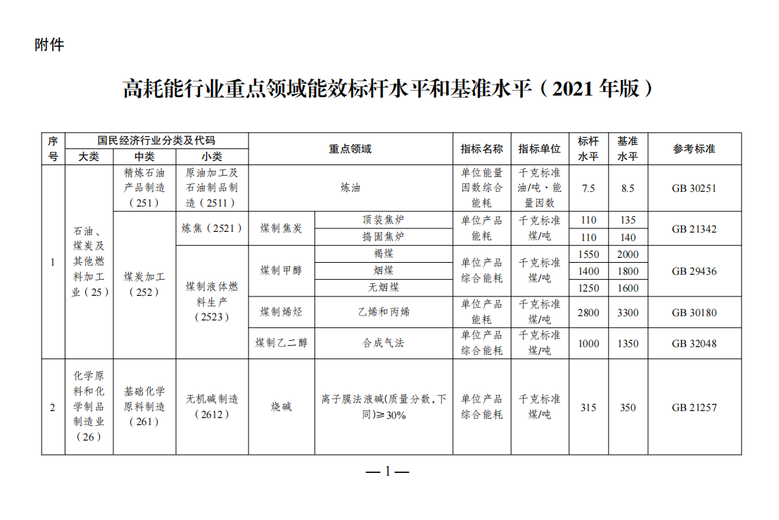 附件:高耗能行业重点领域能效标杆水平和基准水平(2021年版)