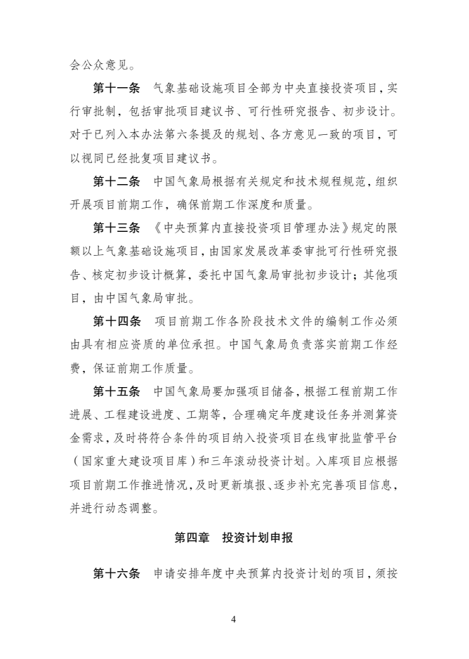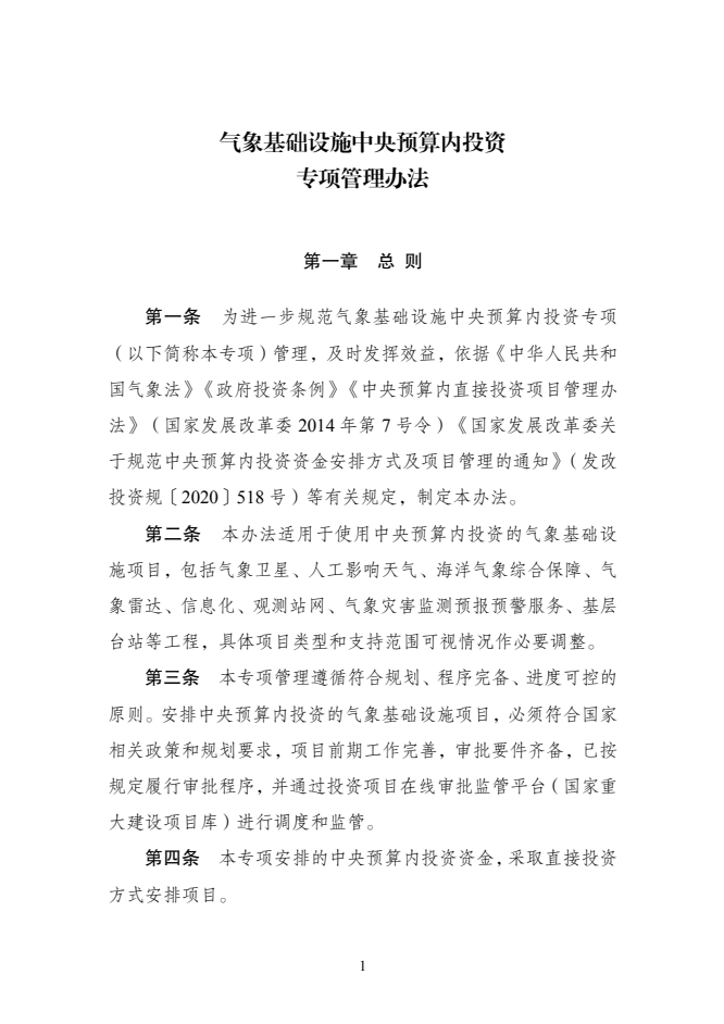 为贯彻落实党中央、国务院决策部署,进一步规范气象基础设施专项管理,根据《政府投资条例》和中央预算内投资管理的相关规定,我们制定了《气象基础设施中央预算内投资专项管理办法》。现印发给你们,请认真执行。
