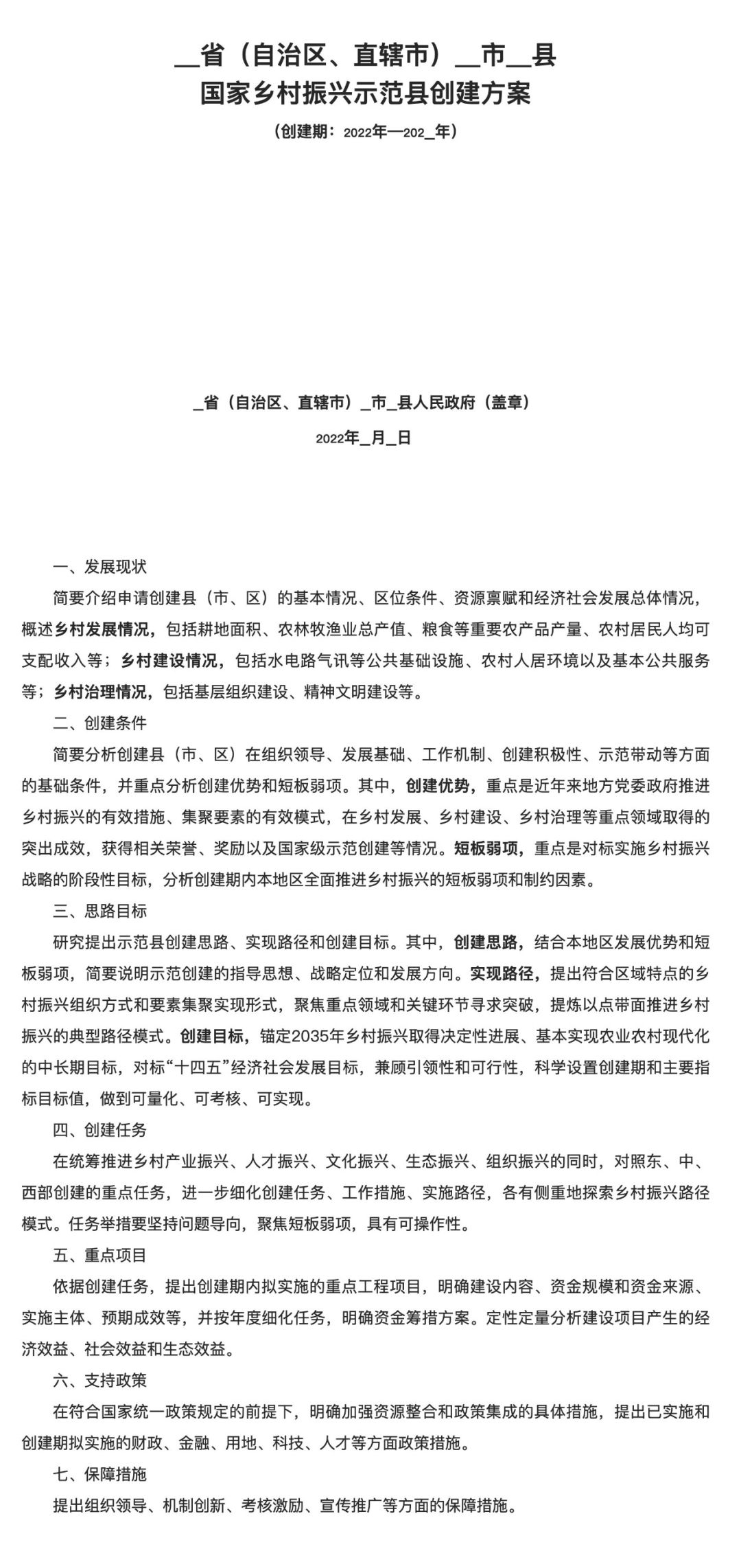 2. 省(自治区、直辖市) 市 县国家乡村振兴示范县创建方案